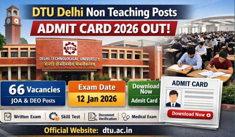 DTU Delhi Non Teaching Recruitment 2025 latest update is out. (DTU) has officially released the DTU Delhi Non Teaching Posts Admit Card 2026 for various positions including Junior Office Assistant (JOA) and Data Entry Operator (DEO). Candidates who applied for the recruitment can now download their admit card from the official link provided below.
