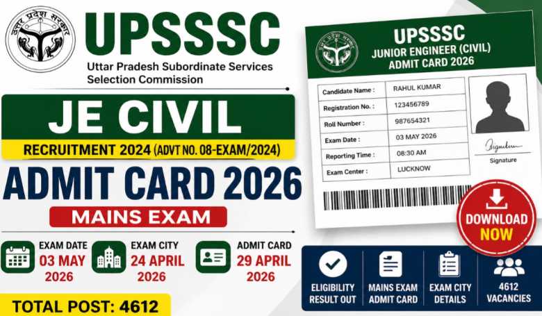 UPSSSC JE Civil Admit Card 2026, here’s a complete and SEO-friendly guide with all the latest updates. The has officially released the admit card for the Junior Engineer (Civil) Mains Exam under Advt No. 08-Exam/2024.