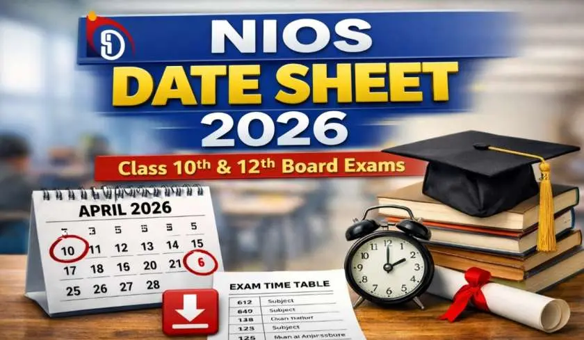 NIOS Date Sheet 2026 released for April exams. Check NIOS Date Sheet 2026 Class 10th & 12th exam dates, practical schedule, and download PDF.