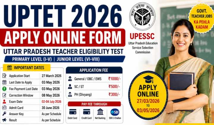 Candidates who want to appear in the Uttar Pradesh Teacher Eligibility Test (UPTET 2026) must complete the UPTET 2026 Apply Online Form before the last date.