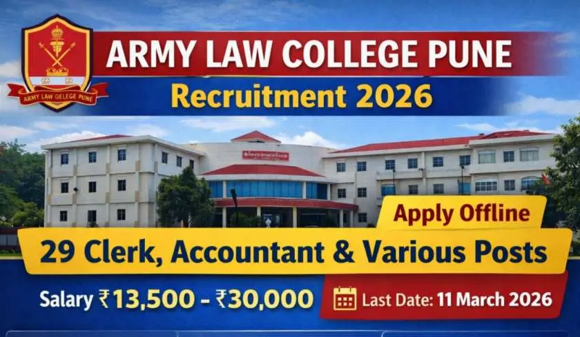 If you are searching for Army Law College Pune Vacancy 2026, Clerk Jobs in Pune, Accountant Recruitment 2026, or Army College Jobs, this article provides complete details including eligibility, salary, selection process, and how to apply.