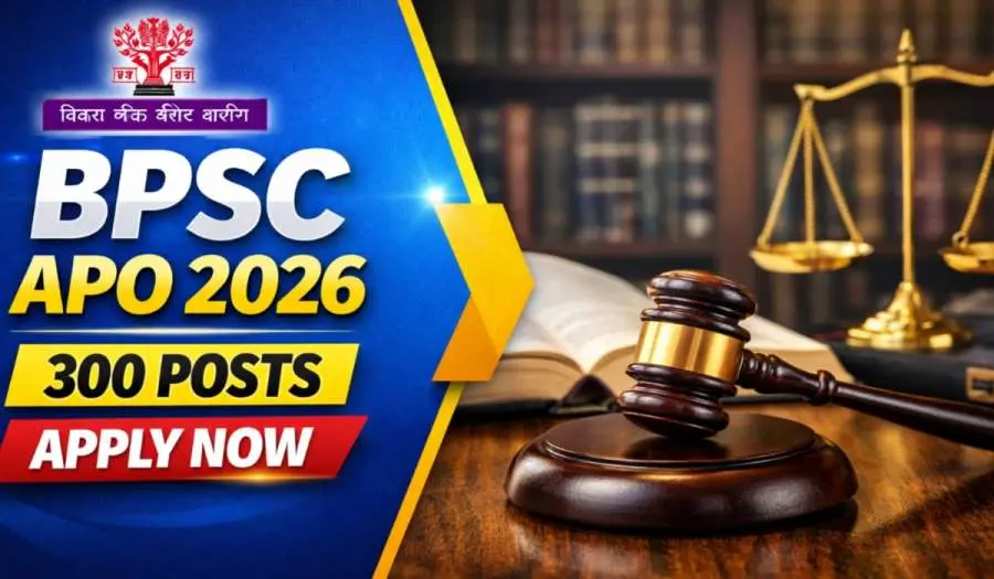 The Bihar Public Service Commission (BPSC) has officially released the notification for Bihar BPSC APO Recruitment 2026. This recruitment drive is being conducted for 300 Assistant Prosecution Officer (APO) posts. Interested candidates who have completed their LLB degree can apply online from 27 February 2026 to 20 March 2026.
