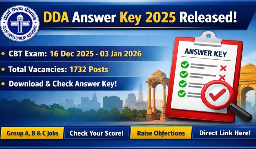 The Delhi Development Authority (DDA) has officially released the DDA Answer Key 2025 for the recruitment examination conducted under Advertisement No. 09/2025/Rectt. Cell/Pers./DDA. Candidates who appeared in the Computer Based Test (CBT) held between 16 December 2025 and 03 January 2026 can now download and check their answer key from the official portal.