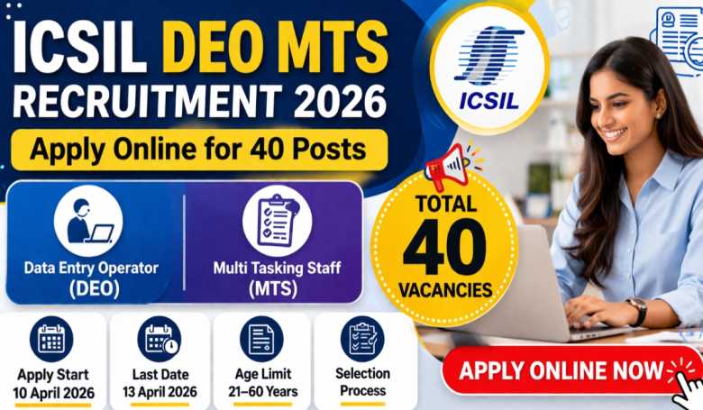 Interested candidates can apply online for the ICSIL DEO MTS Recruitment 2026 from 10 April 2026 to 13 April 2026. Before applying, candidates are advised to carefully check eligibility criteria, age limit, and selection process.