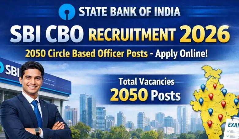 State Bank of India (SBI) has released the Circle Based Officer (CBO) Recruitment 2026 notification under Advt No. CRPD/CBO/2025-26/18. A total of 2050 vacancies have been announced. Eligible candidates can apply online from 29 January 2026 to 25 February 2026. Interested applicants are advised to read the full notification carefully for eligibility, age limit, selection process, pay scale, and other important details.